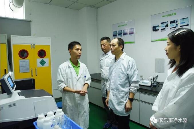 期间,考察团一行着重了解了5S净水器产品的生产、研发状况,以及在国内市场的行业领先地位,并对家乐士的国际化生产管理、CNAS(中国合格评定国家认可委员会)认可实验室、“健康平衡水技术”、多功能型烧结活性炭滤芯等,表示了高度赞赏。