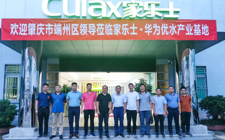 2020年9月23日家乐士净水器厂家讯:2020年9月18日下午,应中国城市水生态大数据中心的邀请,肇庆市端州区水利局刘亚平局长一行莅临“家乐士·中建华为5G优水产业基地”参观考察。家乐士公司董事长陈惠东与中建水务董事长孙宝胜陪同。