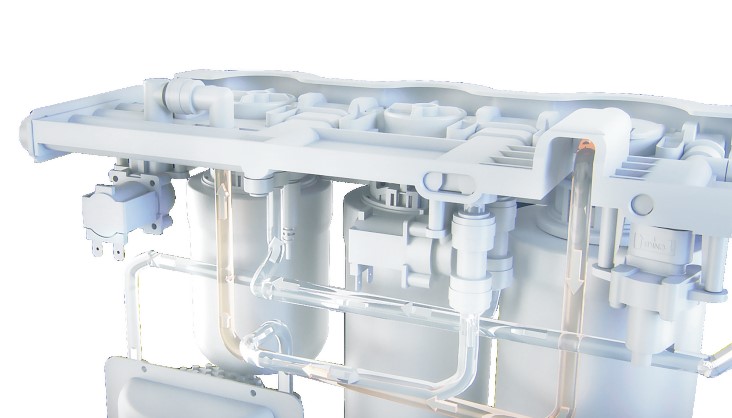 漏水,是净水器最常见也最让人烦恼的问题,独创的集成水路,采用PPO环保材料一体成型,内部无接头,从源头降低了漏水隐患;同时减短了水流长度,有利于水路畅通;耐高压,防爆破,安全可靠!
