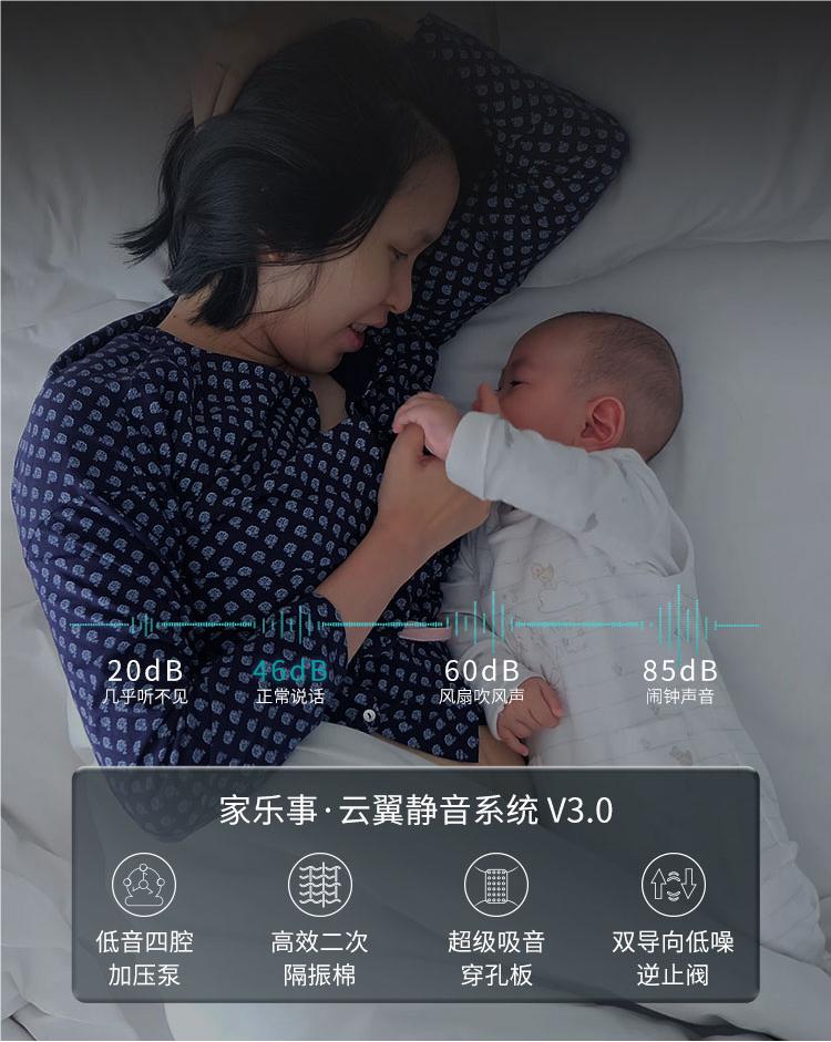 净水器的噪音也是一大问题,噪音产生的原因很多,有可能是水压的问题,也有可能是机器没摆好,当然有些净水器本身就会产生很大的噪音。G1012全新设计减震降噪系统——第3代云翼静音系统,声音<46分贝,如轻声说话声大小,即使半夜渴了起来打水,也不用担心打扰到家人休息。