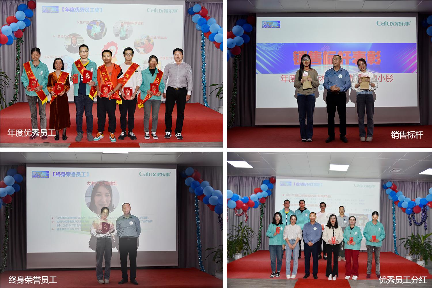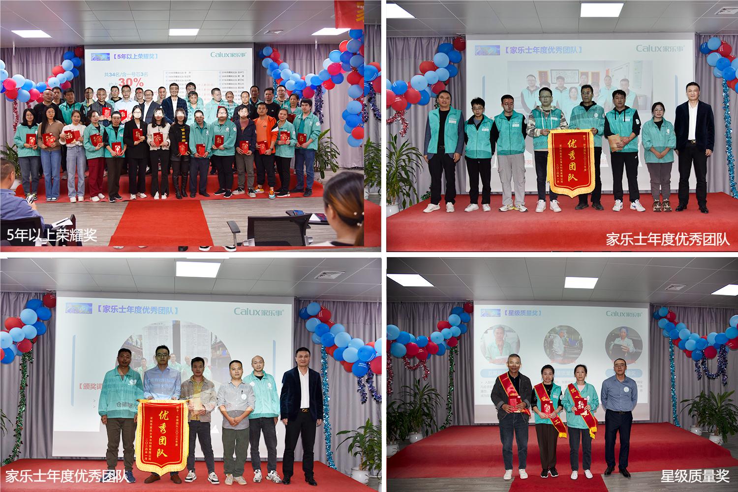 接着,公司对2023年度表现突出的员工和团队进行了隆重表彰。5年以上荣耀奖、年度标杆奖、优秀团队奖、星级质量奖、终身荣誉奖,这些在平凡岗位上做出不平凡成绩的家乐士人,用实际行动诠释了家乐士“严谨、高效、担当、奉献”的价值观,赢得了公司的赞许,是全体员工优秀的榜样。